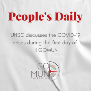 GOMUN 2021 [PEOPLE’S DAILY] UNSC discusses the COVID-19 crises during the first day of III GOMUN China reassures its capability of supporting other countries to combat the crises Augusto Araújo The United Nations Security Council Leia Mais... Imprensa GOMUN abril 23, 2021 7:48 pm